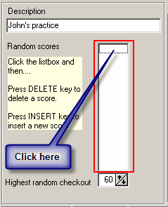 ![]() Click on the listbox, as shown in the picture below, and then press the "Insert" key on your keyboard to insert a new random score.
