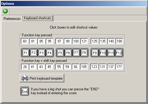 In Darts for Windows 2008 it's easy to map your own scores to the keyboards function keys (F keys).