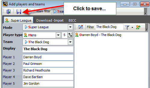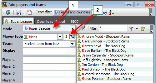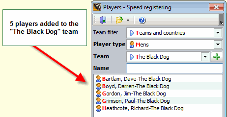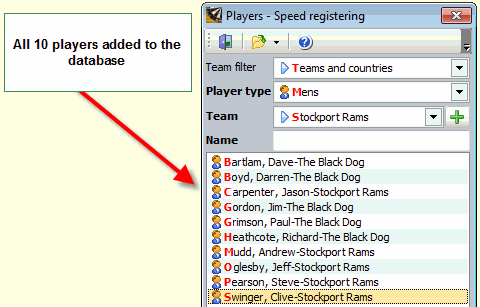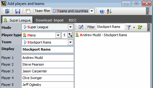 We are now ready to setup the team, or order of play if you like. Open the Add players and teams screen from the "Tools" menu